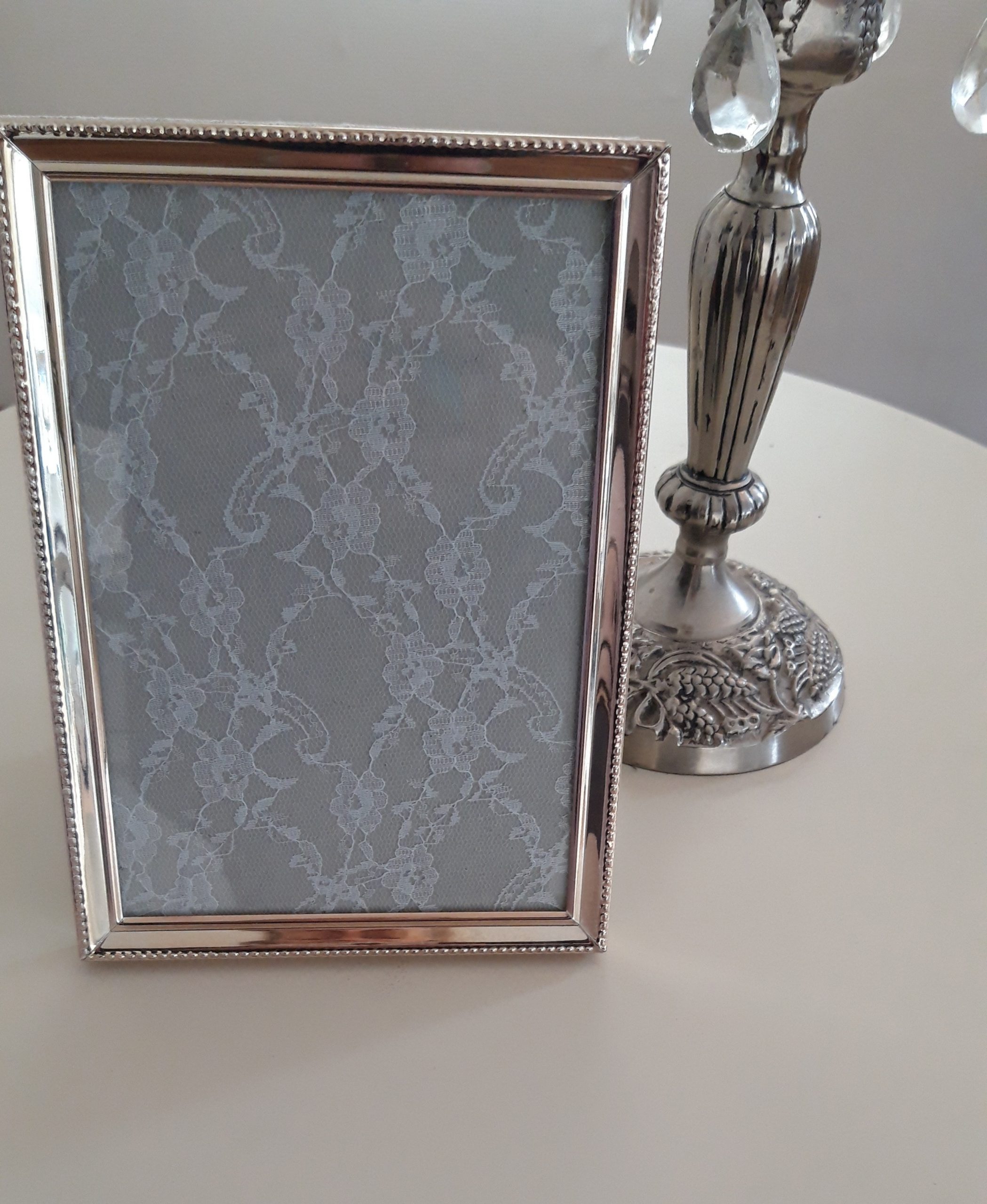 Zilverkleurig fotolijstje 13x18cm. Dit lijstje kan alleen staan en heeft geen haakje om op te hangen.