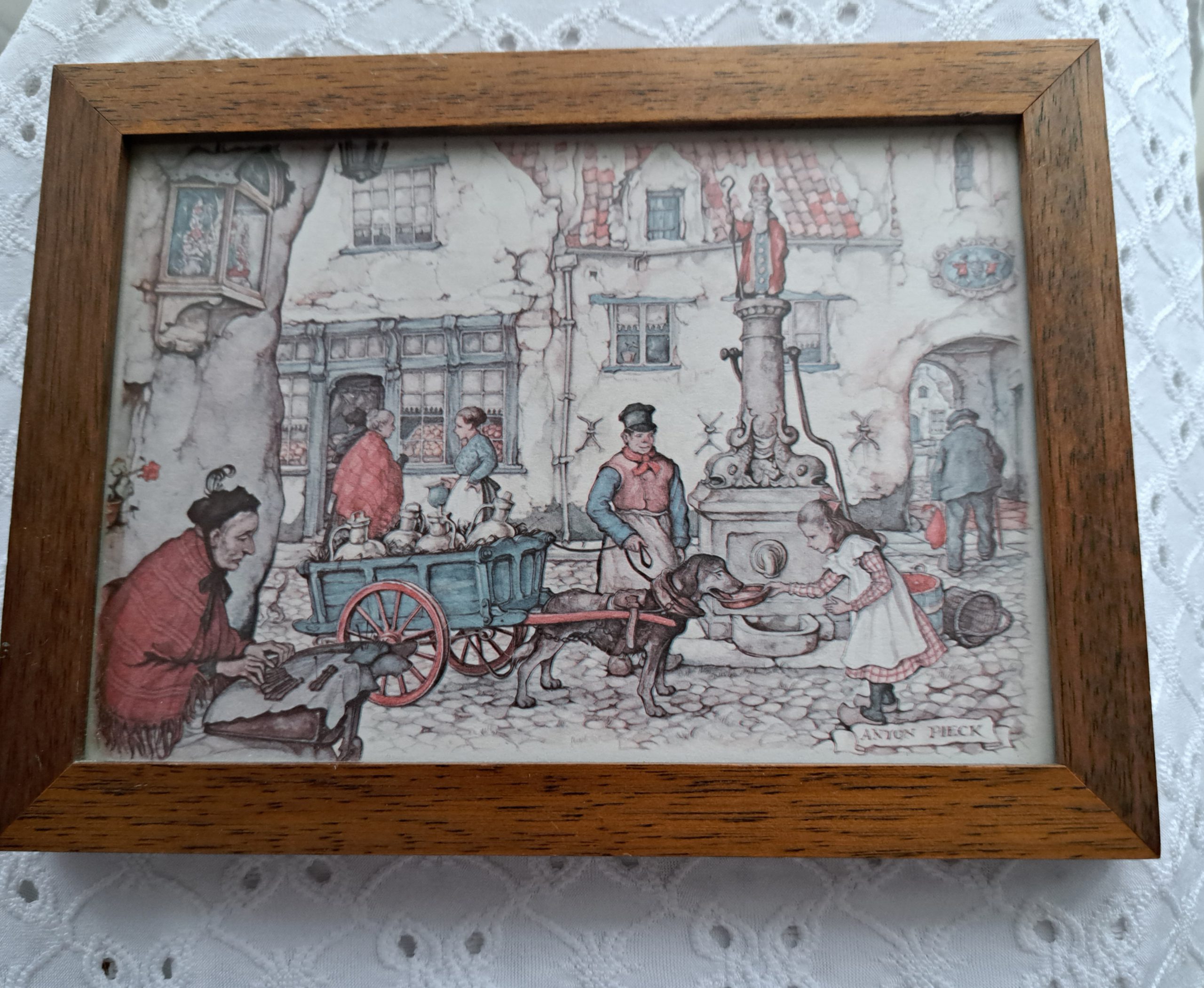 Houten lijstje met Anton Pieck prent . Afkomstig van kunsthandel Kroonder te Amsterdam