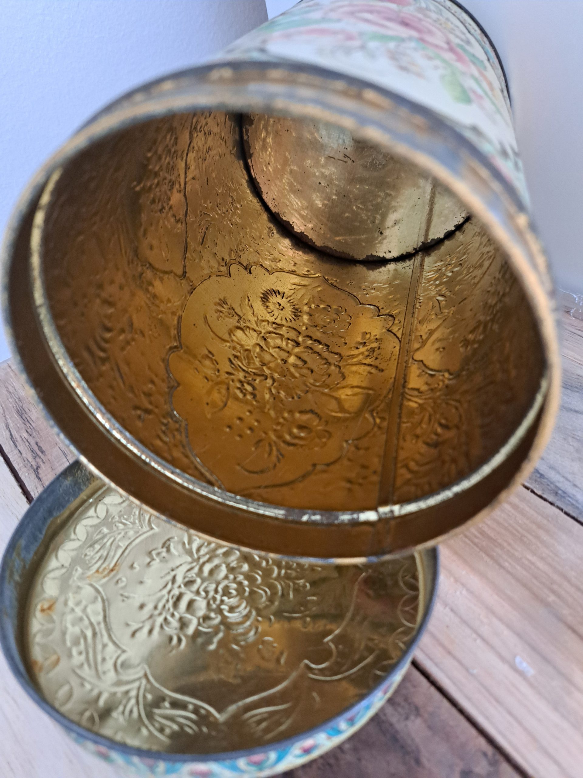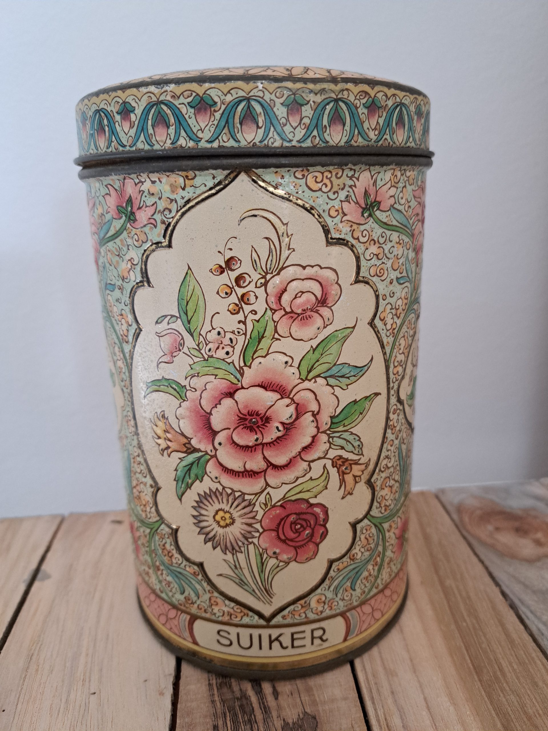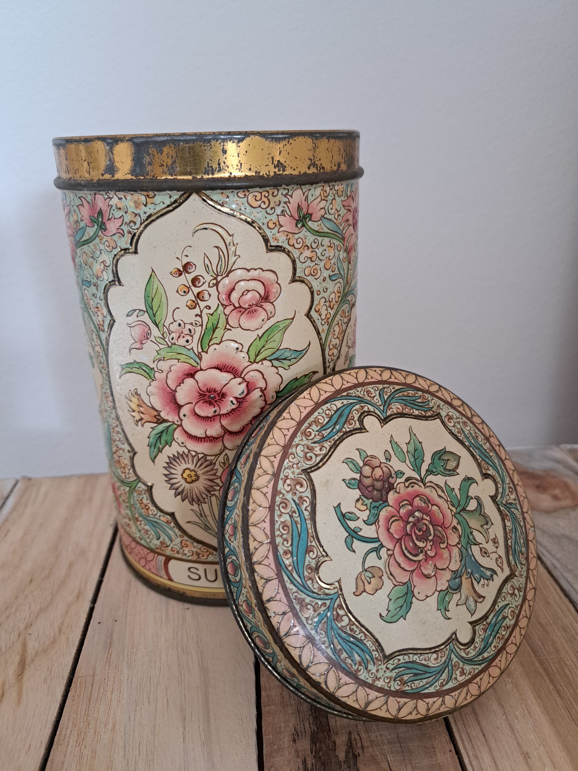Hele mooie brocante voorraad bus “suiker”. Prachtig gedecoreerd met bloemen in relief. Heeft sporen van ouderdom.