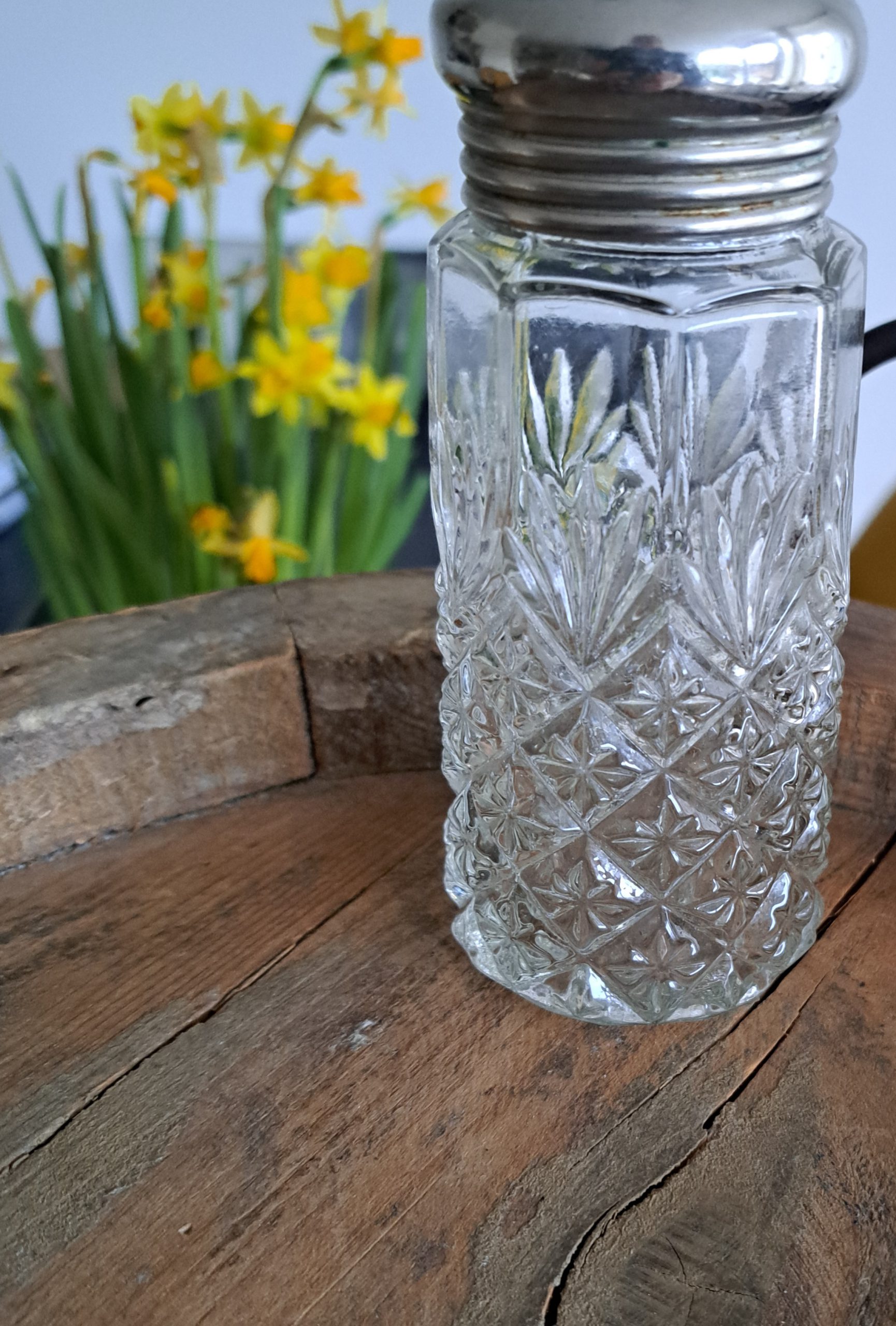 Vintage strooier van glas met metalen schroefdop met 20 gaatjes